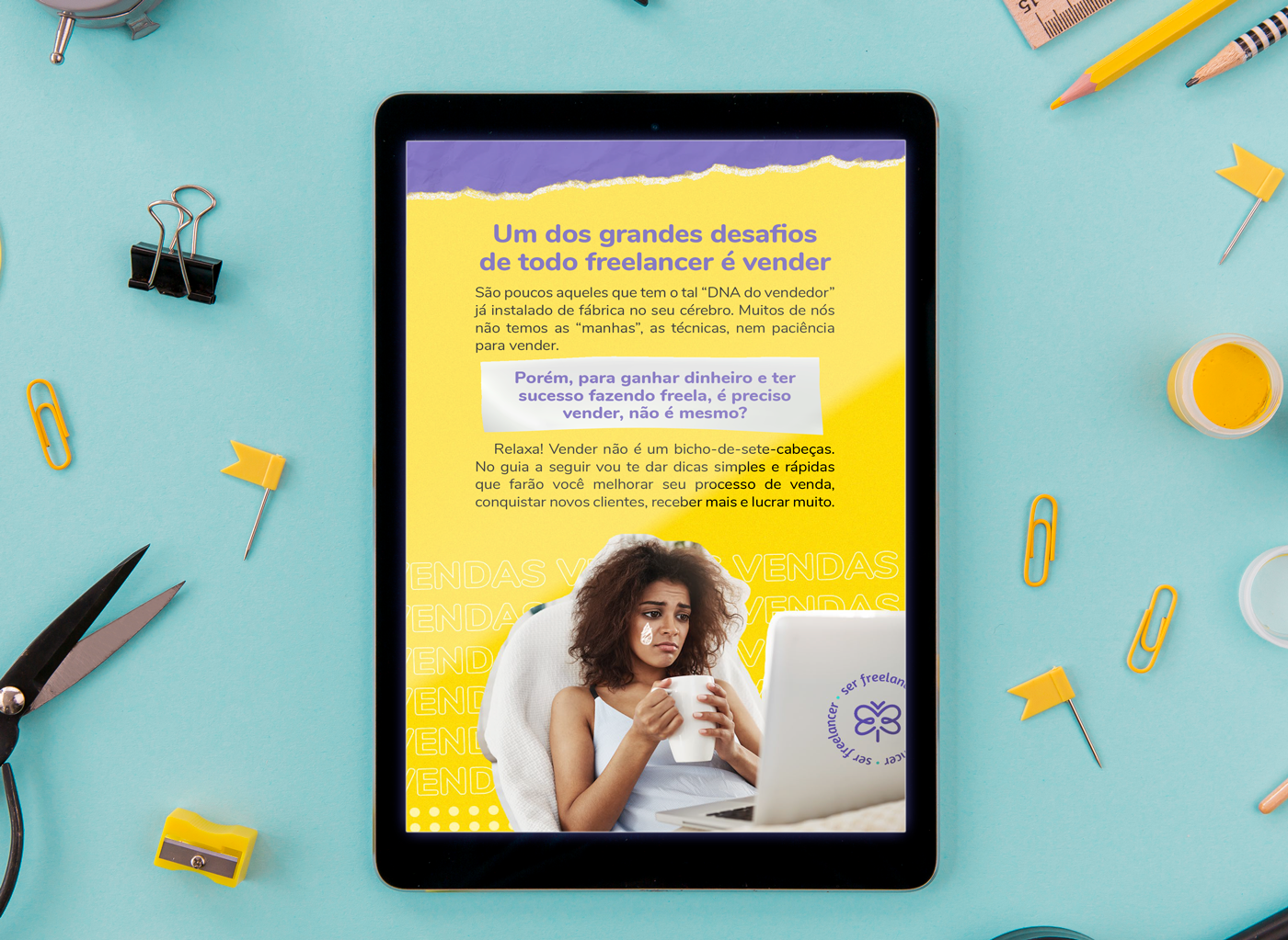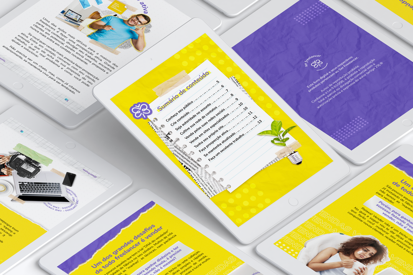Este foi o primeiro com a nova identidade visual do Ser Freela, desenvolvida pelo Sebastian Baltazar e devo dizer que foi um desafio. De criatividade, equilíbrio, uso de cores e texturas, pois é um projeto muito mais elaborado que os livros anteriores do Ser Freela. E o resultado ficou lindão! À altura do conteúdo! Como gosto de dizer.