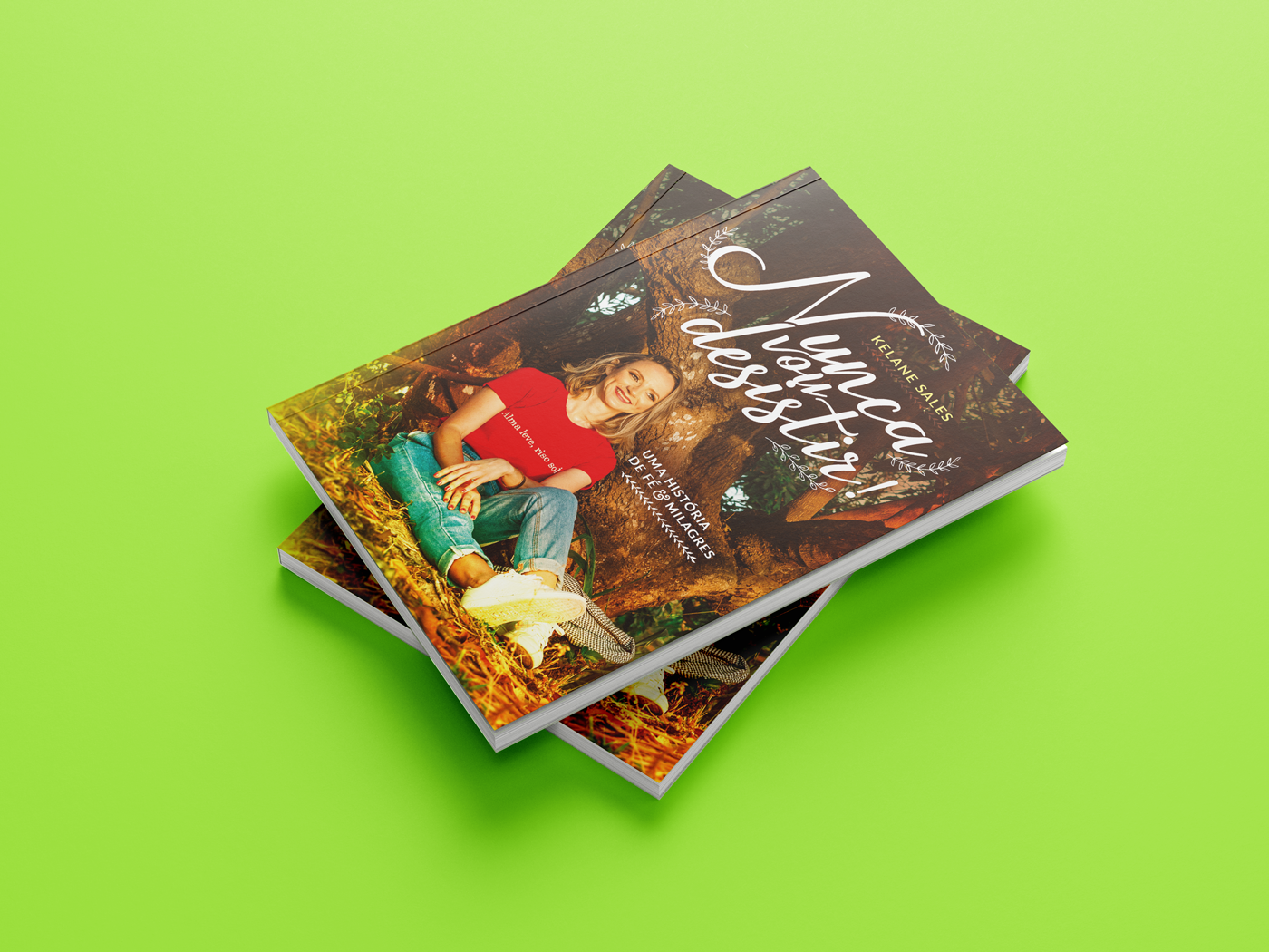 Um dos projetos mais lindos que tive a oportunidade de participar, foi para o livro "Nunca vou desistir" da Kelane Sales. É um daqueles livros que testa sua Fé! Você vai ler e se surpreender. Neste projeto fiz a capa e o projeto gráfico e para a diagramação contei com a ajuda da Tainá D'Amico, obrigada querida! A identidade quem pensou foi a própria Kelane Sales. O livro todo tem a temática de natureza, árvore, criar raízes! E sou apaixonada pelo design dele, por que foi a autora que escolheu tudo, e também por que ficou muito lindo, harmonizou super bem. É um livro que me aqueceu o coração. Mais páginas deste rico projeto você pode conferir no portfólio no Behance.